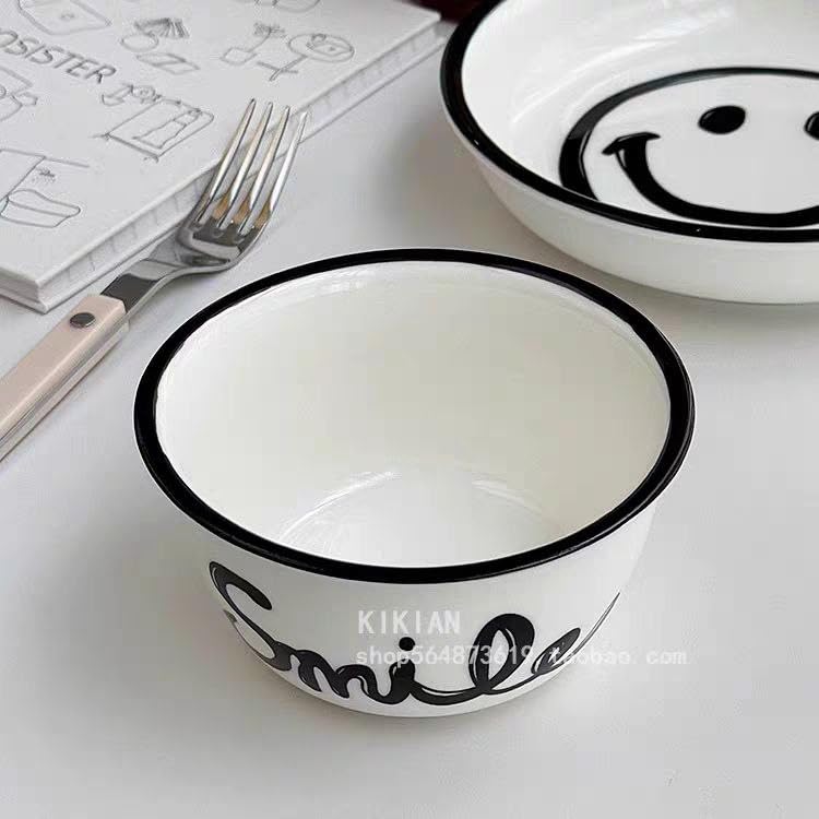- مزايا التصميم: أطباق عميقة سيراميك بيضاء تتميز بنقشة ابتسامة ساحرة وزخرفة سوداء أنيقة حول الحافة لإضفاء جمالية مرحة وعصرية