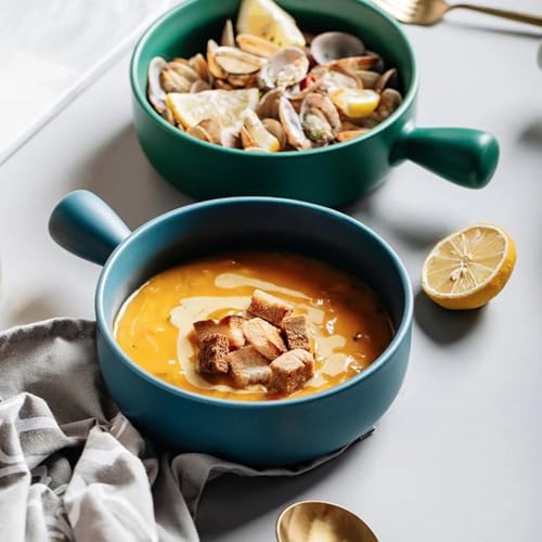Generic - Generic Ceramic Soup Bowl with Handle, 15 cm, Teal, Heat-Safe for Direct Fire .A2