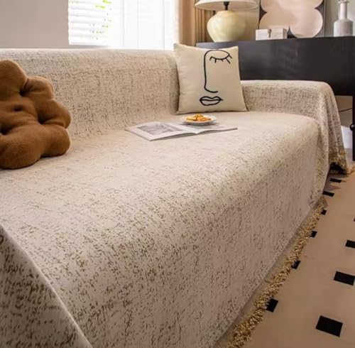 - ELEGANT DESIGN: Features a sophisticated beige colour with textured chenille finish and decorative gold tassel trim along the edges, adding a luxurious bohemian touch to your furniture