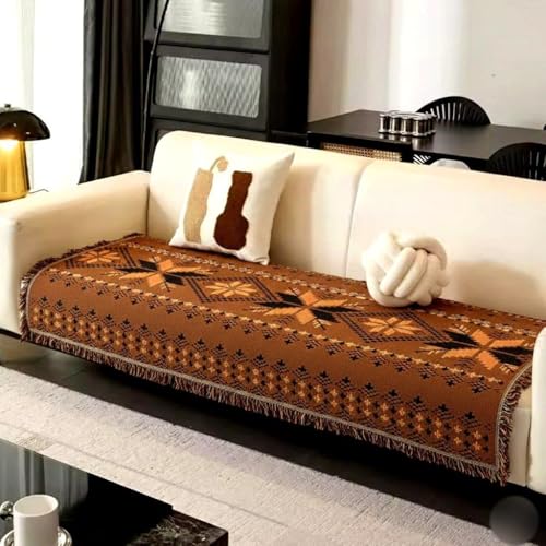 Generic - جيني غطاء اريكة من قماش الشنيل مع شراشيب (بني) بنمط هندسي، 200 سم × 75 سم، واقي اريكة زاوية من فلو