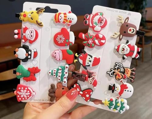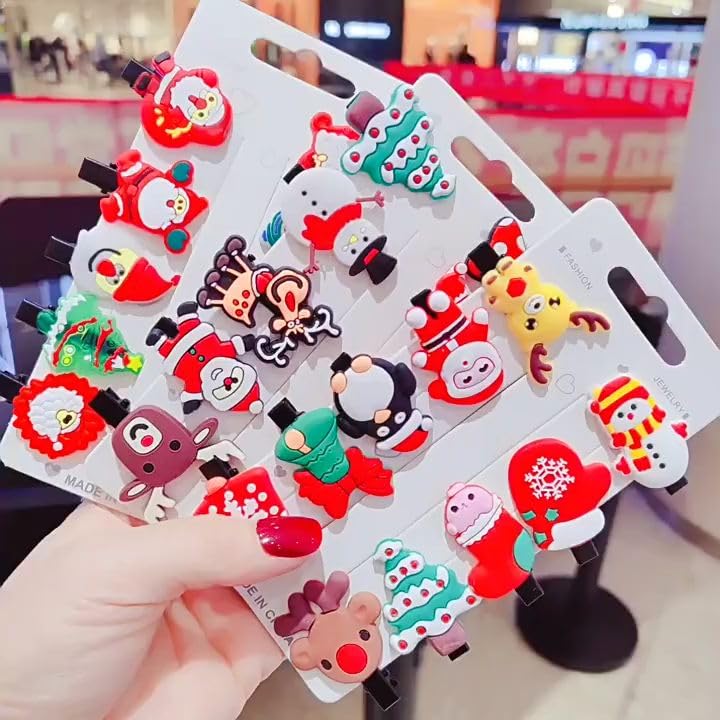 - تصميمات احتفالية: مجموعة من 24 مشبك شعر رائع بطابع الكريسماس تتميز بسانتا كلوز ورجال الثلج والرنة وأشجار الكريسماس وغيرها من أشكال العطلات