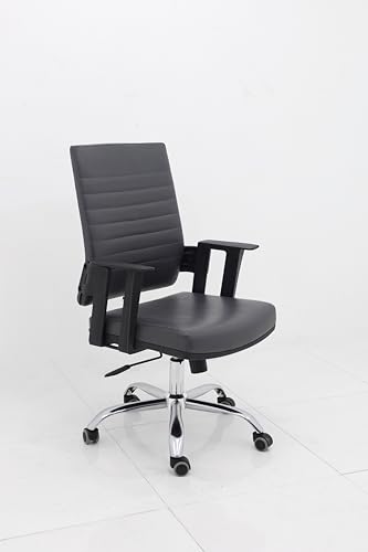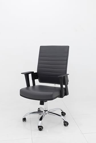 Generic - Generic Classic Black Leather Office Chair, Mesh Fabric, Customizable Size, Split Back, Armless, Rectangular, Tapered Leg, 14kg, 45cm D x 6E+1cm W x 108cm H