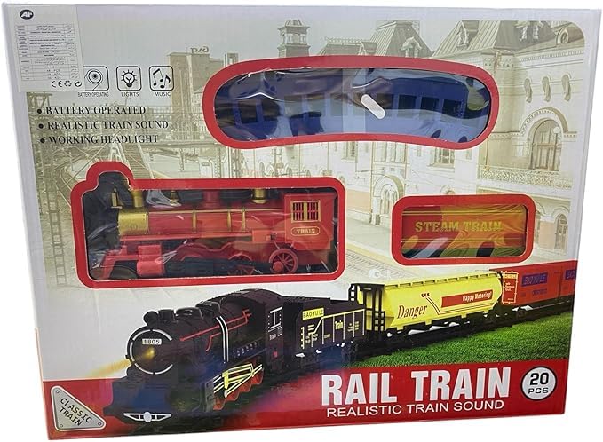 Generic - Generic Classic Rail Train Set, 20 Pieces, Battery Operated with Realistic Sound and Working Headlight