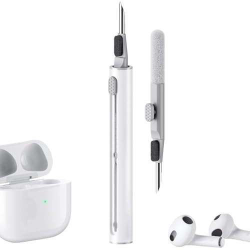 Spaceshoop - طقم أدوات تنظيف لسماعات اير بودز برو 1 2 3 متعدد الوظائف مع فرشاة ناعمة وإسفنجة لسماعات الأذن البلوتوث وأدوات تنظيف سماعات سامسونج وسوني وبيتس وبوز - أبيض