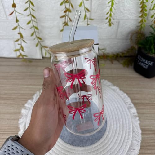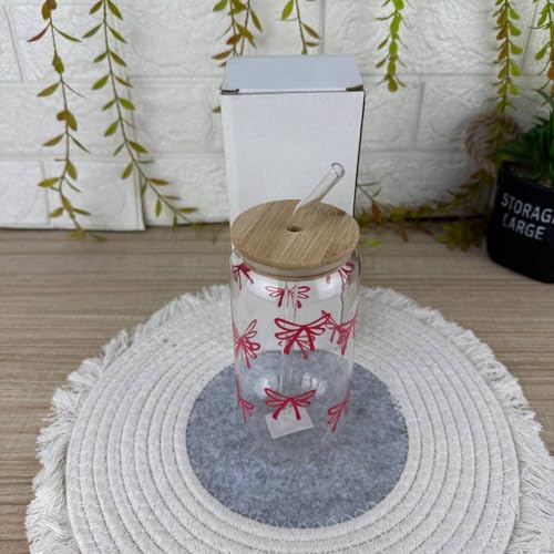- PREMIUM DESIGN: Clear glass cup features an elegantly printed red bow pattern that adds a charming decorative touch to your drinkware collection