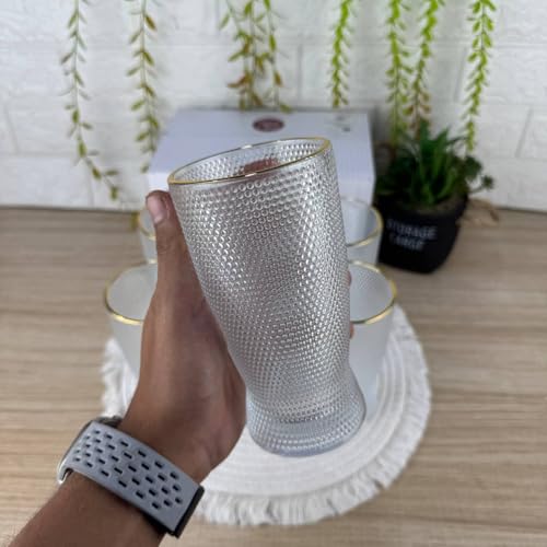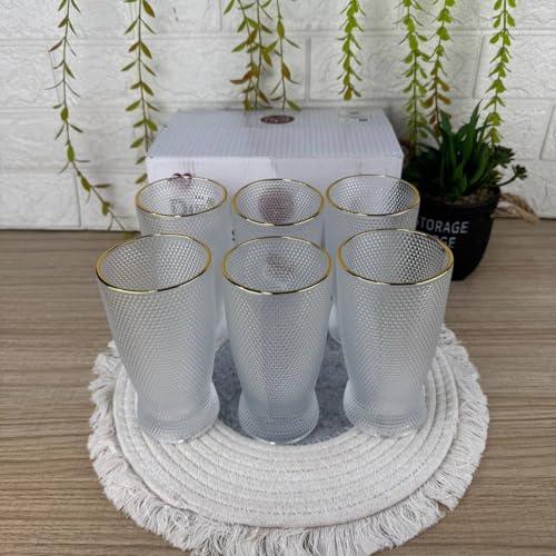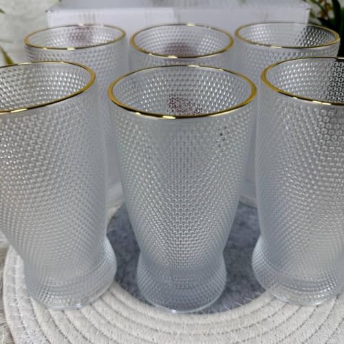 - LUXURIOUS GOLD RIM: Each drinking glass is adorned with a slim gold rim along the top edge, adding a touch of elegance and sophistication perfect for everyday use or special occasions