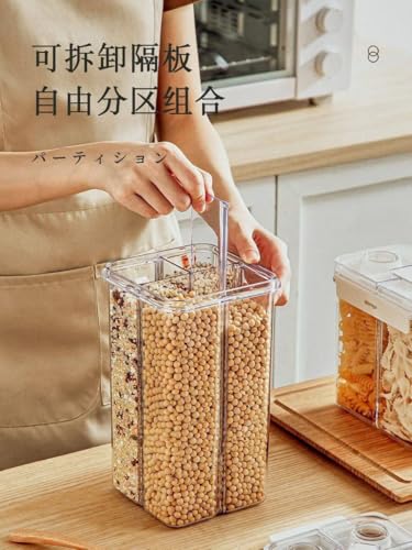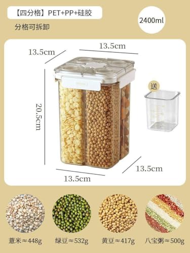 - السعة: أربعة مساحات منفصلة مع أغطية محكمة الإغلاق، مثالية لتنظيم وتخزين أنواع مختلفة من المواد الجافة والحبوب والبقوليات في علبة تخزين واحدة مريحة.