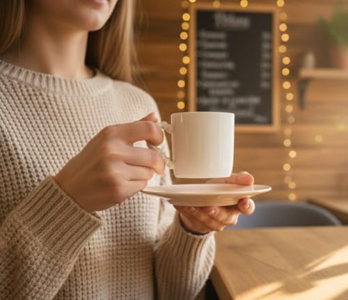 - CONVENIENT PAIRING: Each cup comes with its own matching round saucer to catch drips and provide a convenient spot for biscuits or spoons