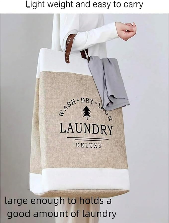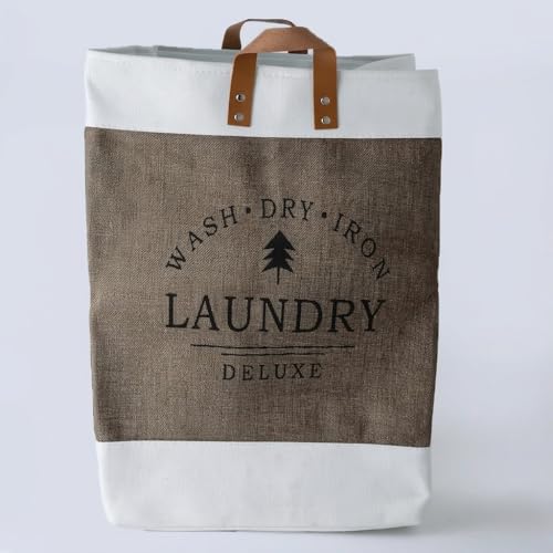 - هيكل بلونين: مزيج أنيق من قماش الجوت البني الطبيعي ومواد قماشية بيضاء واضحة مع طباعة عتيقة "Wash Dry Iron Laundry Deluxe" للحصول على جمالية ريفية وأنيقة