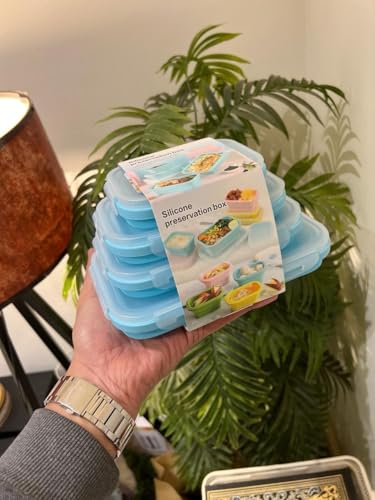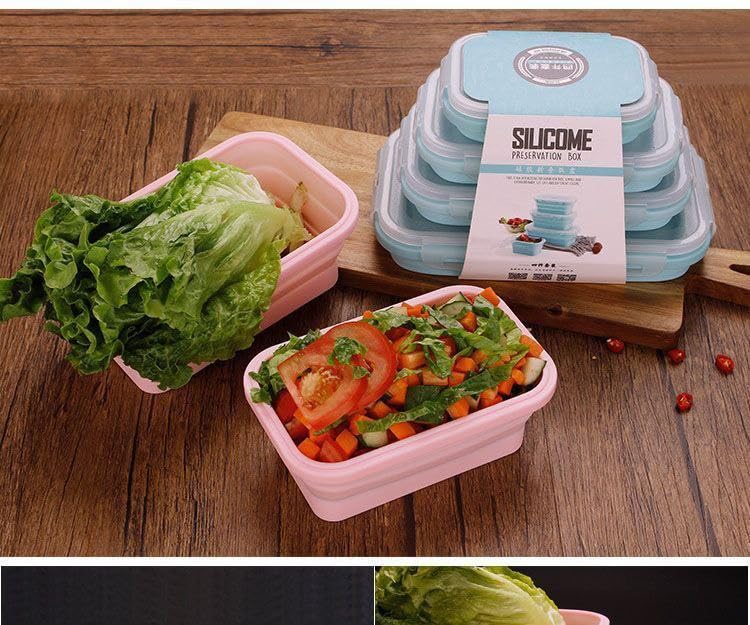 - COLLAPSIBLE DESIGN: Heat-sealed silicone containers fold flat when not in use, saving valuable storage space in your kitchen