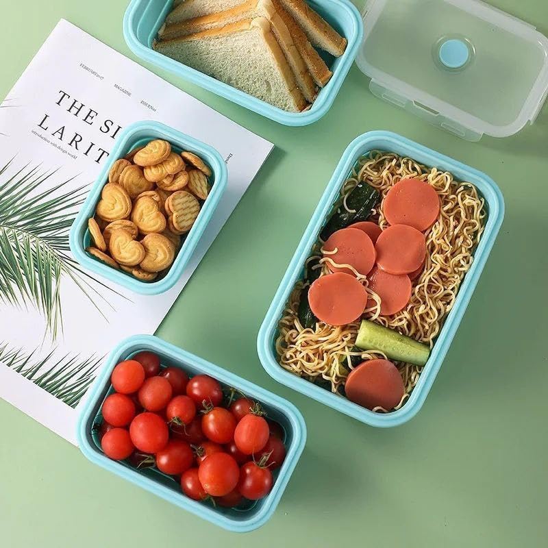 Generic - Generic Collapsible Silicone Food Storage Containers with Airtight Lids, Turquoise, 4-Piece Set, Heat-Sealed, 355-1200ml Capacity .hga
