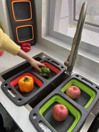Generic - مصفاة حوض سيليكون قابلة للطي من مستويين، أخضر وأحمر