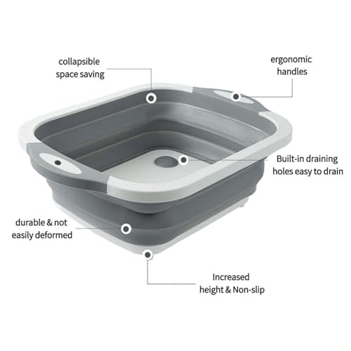 SJCCKJ - Generic Collapsible washing up bowl, innovations multi function bowl drying rack, portable cutting board, retractable drain washing basket basin vegetable fruit tray for camping, picnic, kitchen