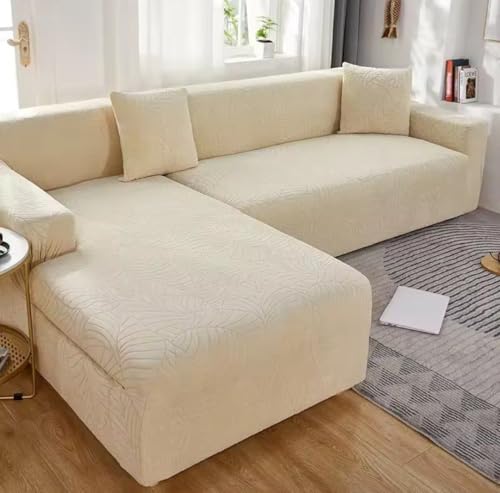 Generic - Generic Corner Sofa Cover, 2 Piece Set, Textured Leaf Pattern, Stretch Fit Slipcover for L-Shaped Sectional, (beige) .flo