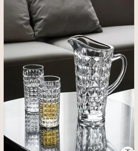 - PREMIUM SET: Complete 7-piece crystal glass set featuring 1 elegant pitcher and 6 matching glasses with stunning diamond-cut pattern design