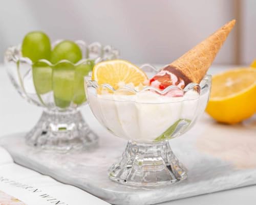 - ELEGANT DESIGN: Beautiful crystal glass dessert bowls with a classic scalloped pattern, perfect for serving ice cream, jellies, and other delightful treats