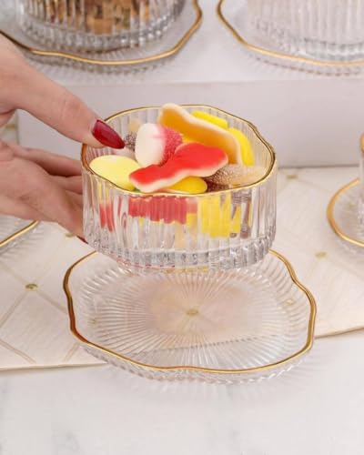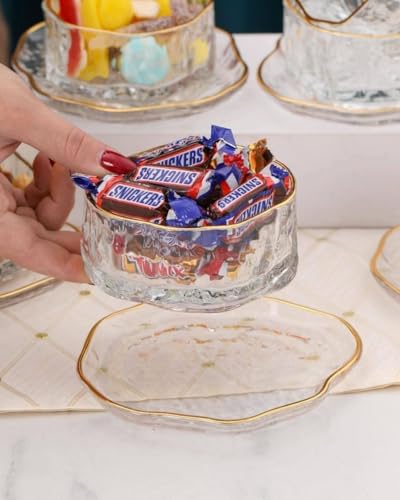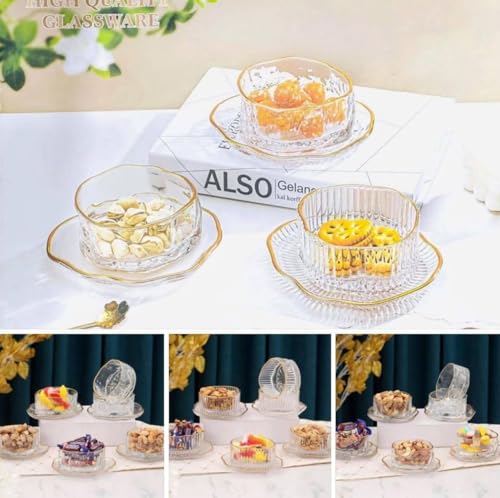 - تصميم أنيق: تتميز أواني الطعام المصنوعة من الزجاج الكريستالي بحواف ذهبية متطورة وتفاصيل نمط مضلعة جميلة لتجربة طعام فاخرة