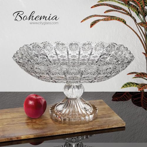 - ELEGANT DESIGN: Bohemian-style crystal glass fruit bowl features an intricate cut glass pattern and a sturdy pedestal base for sophisticated presentation