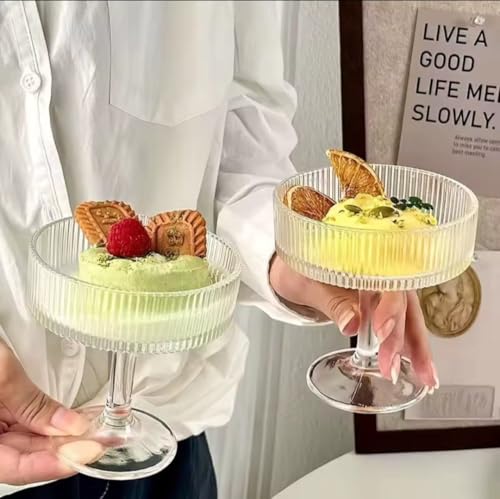 - الأبعاد: تتميز كل بولة بحجم عملي مناسب لأطباق الحلوى الفردية، مع ساق مرتفع لتقديم أنيق.