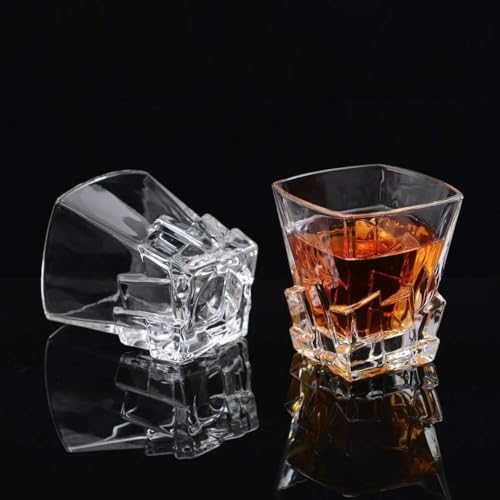 - PREMIUM DESIGN: Square-shaped crystal whiskey glasses with geometric patterns that create stunning light reflections and add sophistication to your drinking experience