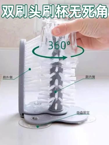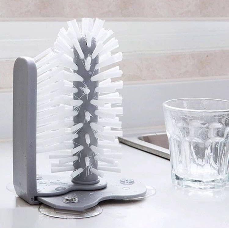 Generic - Generic Cup and Glass Washing Brush with 2 Brushes and 3 Suction Cups, Kitchen Cleaning Tool .sa