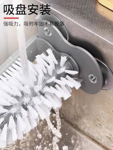 - SECURE SUCTION BASE: Equipped with 3 strong suction cups that firmly attach to sinks, worktops, or any smooth surface, keeping the brush stable during hands-free cleaning