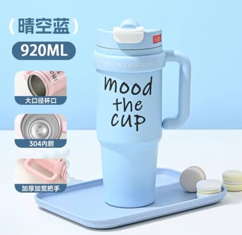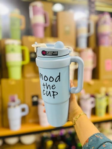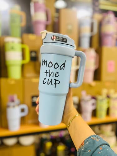 - STYLISH APPEARANCE: Sleek light blue exterior with modern 'mood the cup' typography adds a contemporary touch