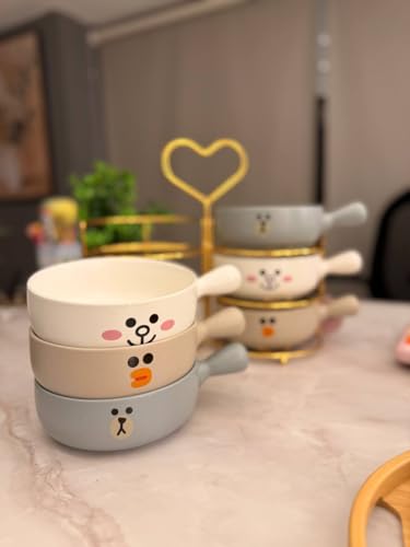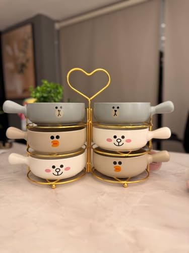 Generic - طقم كسرولة بورسلين بتصميم وجه حيوان لطيف، 6 قطع مع حامل معدني ذهبي، أوعية تقديم مقاومة للحرارة