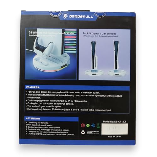 Generic - Generic DEADSKULL PS5/PS5 Slim Stand & Cooling Station with RGB LED, Charging for Playstation 5 Console & Accessories - DC-CD1208 White
