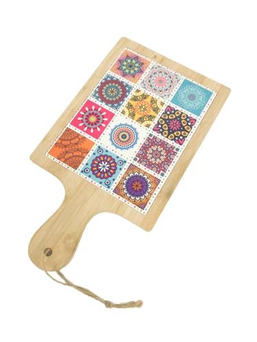 - DUAL PURPOSE: Beautiful serving board that functions as both a cutting surface and decorative piece with vibrant Andalusian-inspired ceramic tile mosaic design