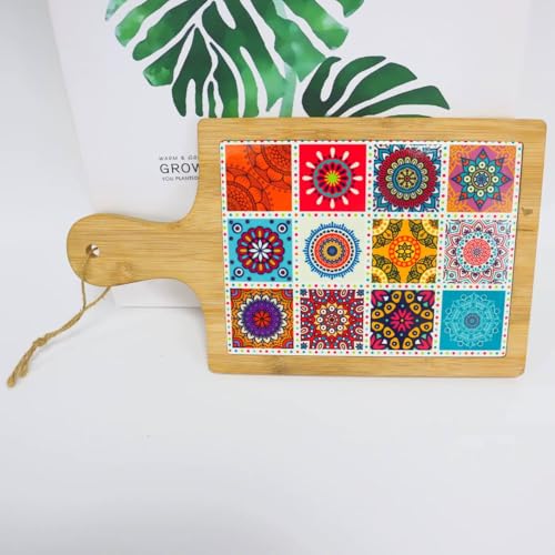 - MATERIALS: Combines durable wooden base with colourful ceramic tile insert featuring 12 unique mandala-style patterns in vivid colours