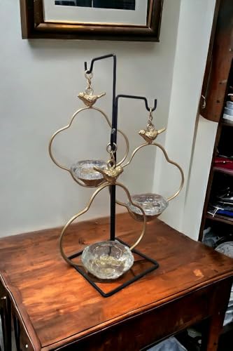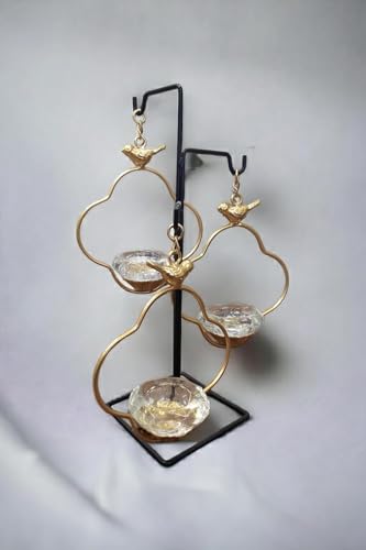 Generic - Generic Decorative Bird Heart Candle Holder Stand, 3-Tier Glass Votives, Gold Metal Frame, Black Base