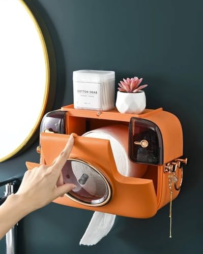 Generic - Generic Decorative Camera-Shaped Bathroom Organiser, Wall-Mounted Toilet Paper Holder, Orange Storage Box with Shelf .ِA2