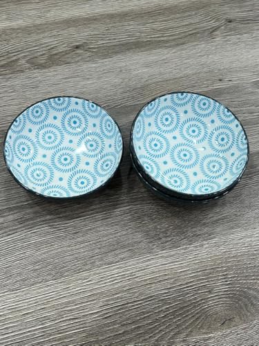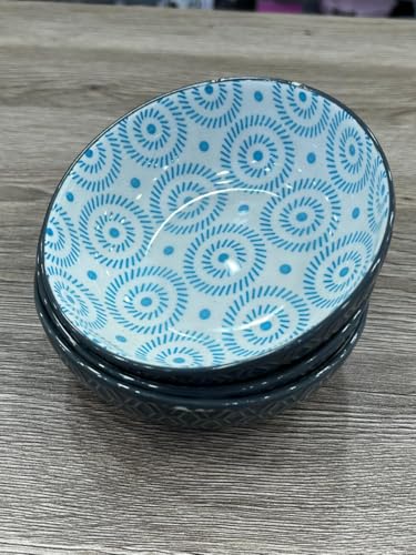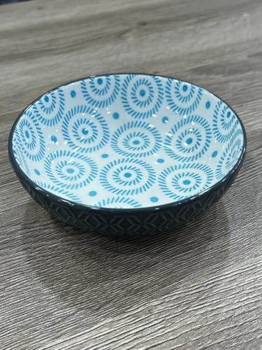 - DESIGN PATTERN: Beautiful blue spiral geometric pattern adorns these ceramic bowls, featuring a contrasting dark exterior trim for added style
