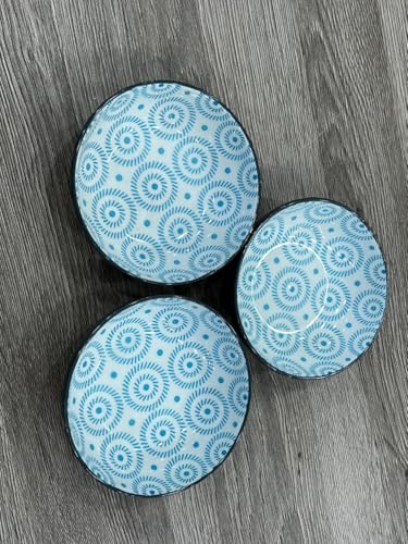 Generic - Generic Decorative Ceramic Bowls, 15 cm, Blue Geometric Pattern, Set of 3, Microwave and Dishwasher Safe.