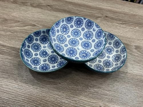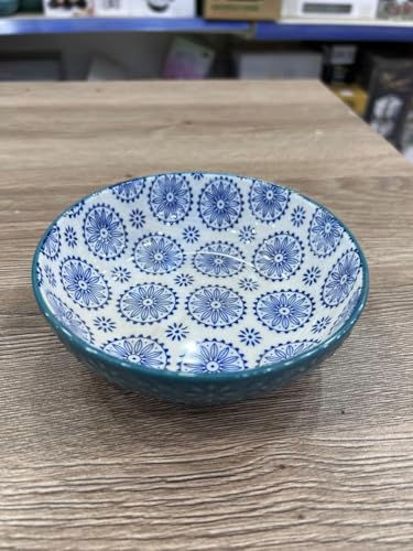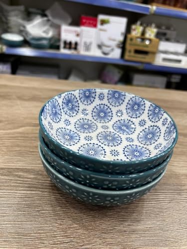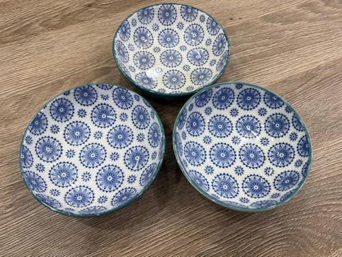 Generic - Generic Decorative Ceramic Bowls, Blue Floral Pattern, 15 cm, Set of 3, White and Teal.