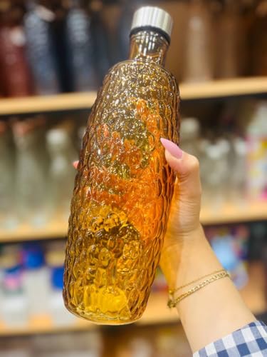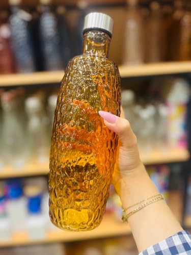 Generic - Generic Decorative Glass Water Bottle with Embossed Pattern, Steel Cap, .Rom (honey)