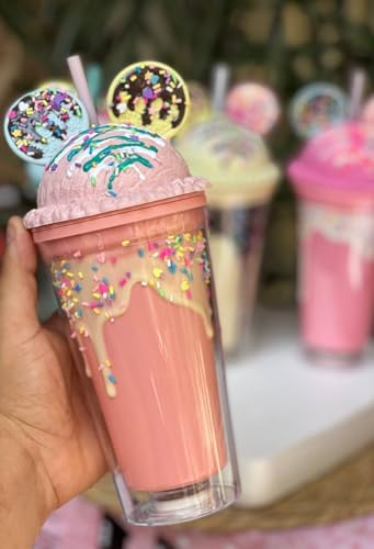 - تصميم فاخر: كوب أكريليك أنيق يتميز بغطاء مخروط الآيس كريم المزخرف مع رشات ملونة وتفاصيل سفلية لامعة للحصول على مظهر ممتع ولافت للنظر