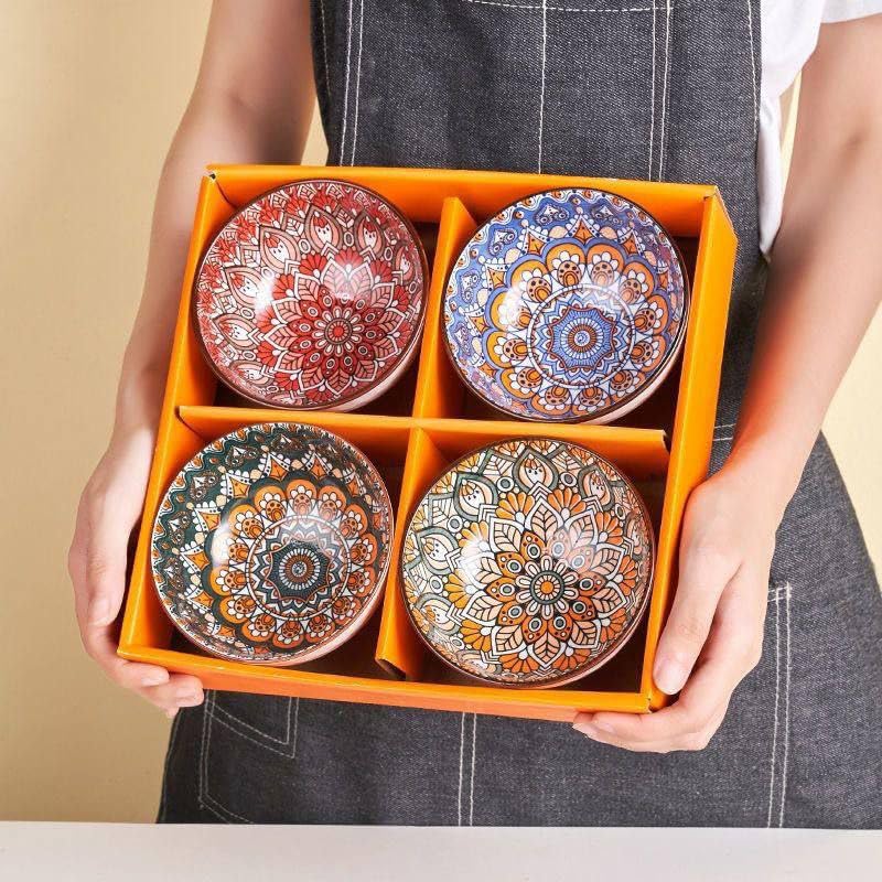 Generic - بولة بورسلين بتصميم ماندالا للديكور، مجموعة من 4 قطع، متعددة الألوان، صندوق هدايا. zl