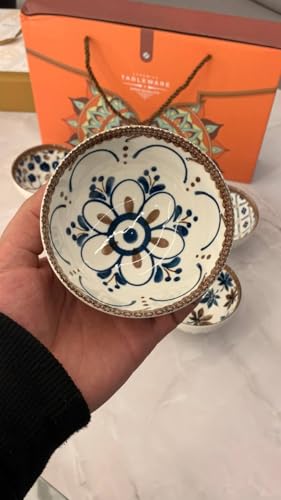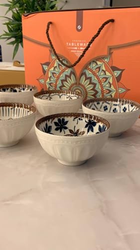 - DESIGN VARIETY: Set of 6 unique porcelain bowls featuring elegant blue and brown floral patterns with decorative rim details