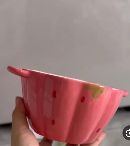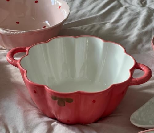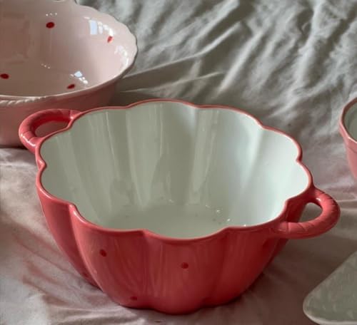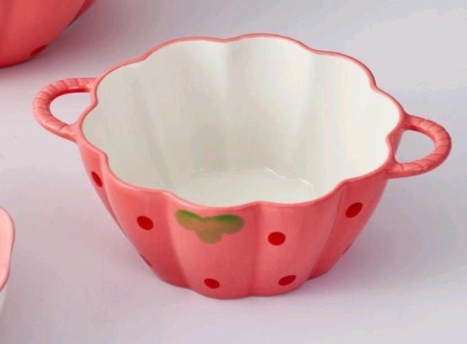- DESIGN: Charming pink bowl with red polka dots and decorative double handles, featuring a scalloped edge design for an elegant presentation