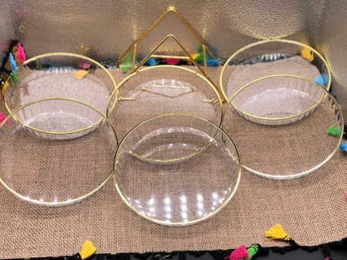 Generic - Generic Decorative Snack Plate Set, 14 cm Gold-Rimmed Acrylic Plates with Metal Display Stand, 7 Pieces .sa