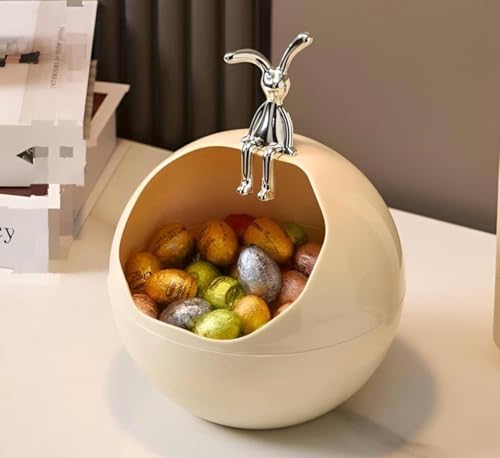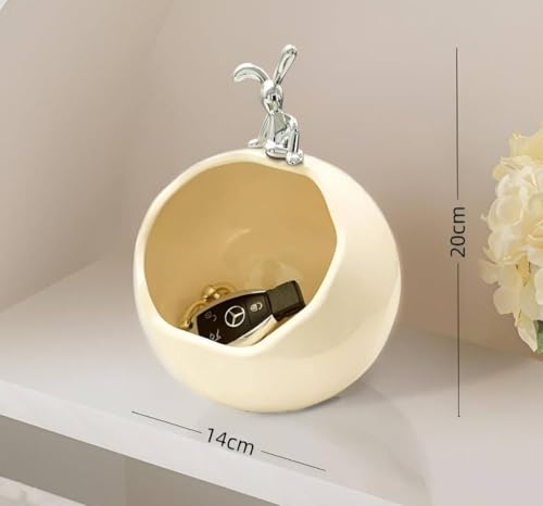 - تصميم أنيق: صندوق تخزين كروي من السيراميك الأبيض يتميز بشخصية زخرفية فضية مميزة مثبتة في الأعلى، مما يضيف لمسة فنية عصرية إلى أي مساحة