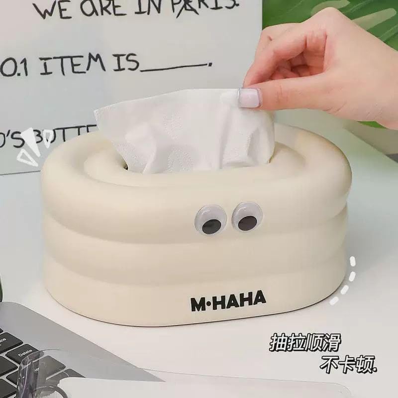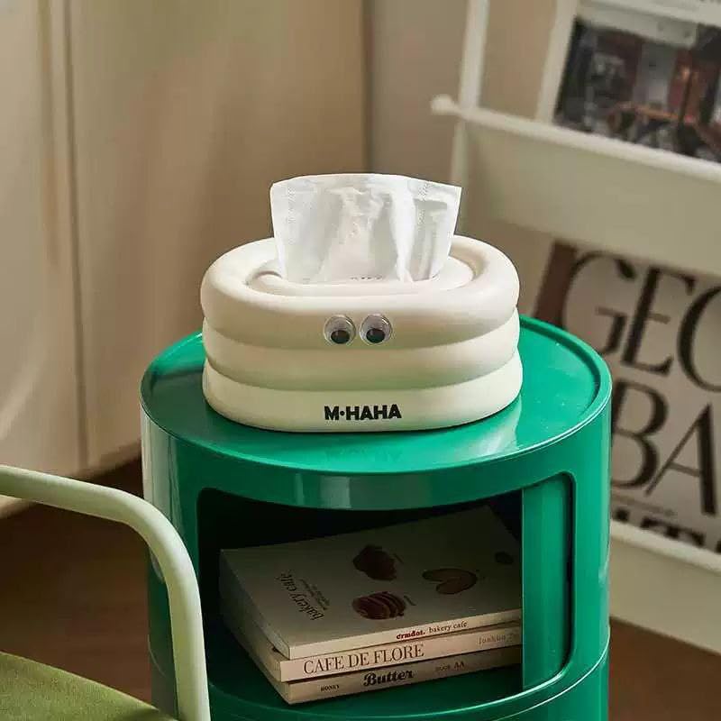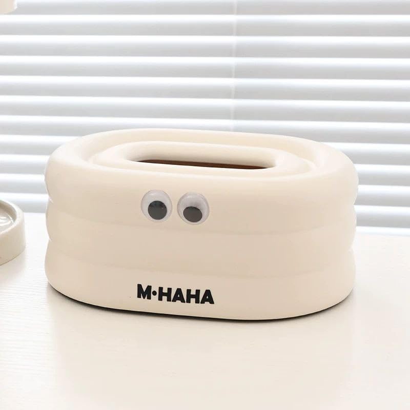 - MODERN DESIGN: Stylish white tissue box holder featuring playful googly eyes and M-HAHA branding, perfect for adding a whimsical touch to any room