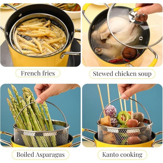 - VERSATILE COOKING SET: Deep frying pot with matching strainer basket and lid, perfect for preparing fried chicken, chips, and other deep-fried delicacies