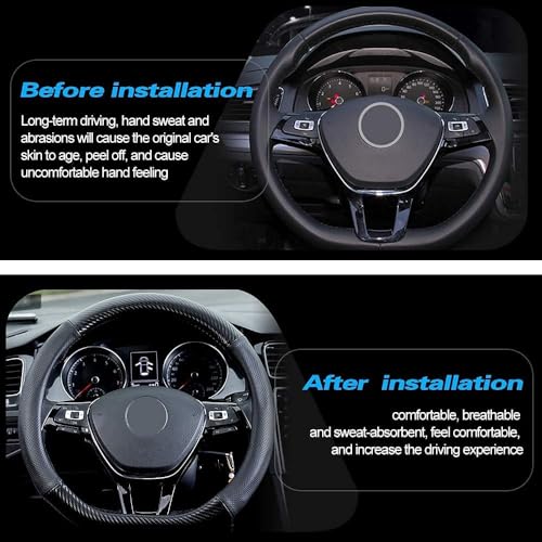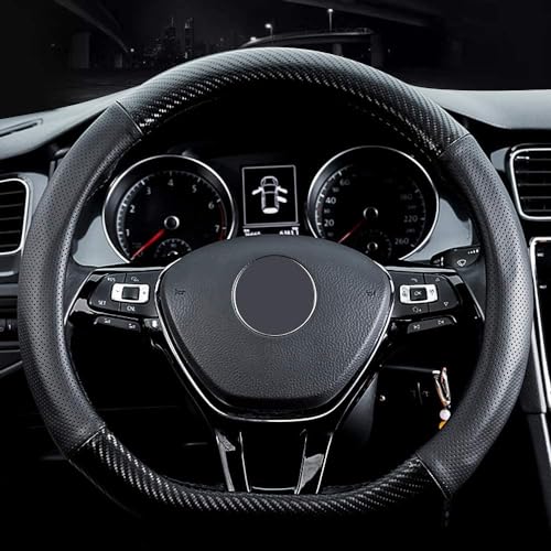Generic - غطاء حلقي لطارة الدركسيون مصنوع من الجلد والألياف الكربونية بشكل حرف D وتصميم مقاوم للانزلاق بمقاس عالمي 38 سم، لون أسود كربوني