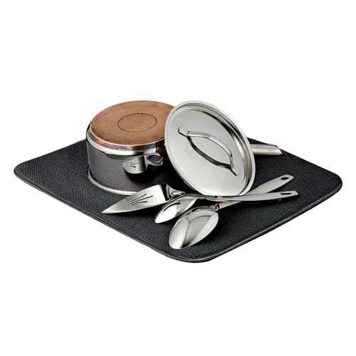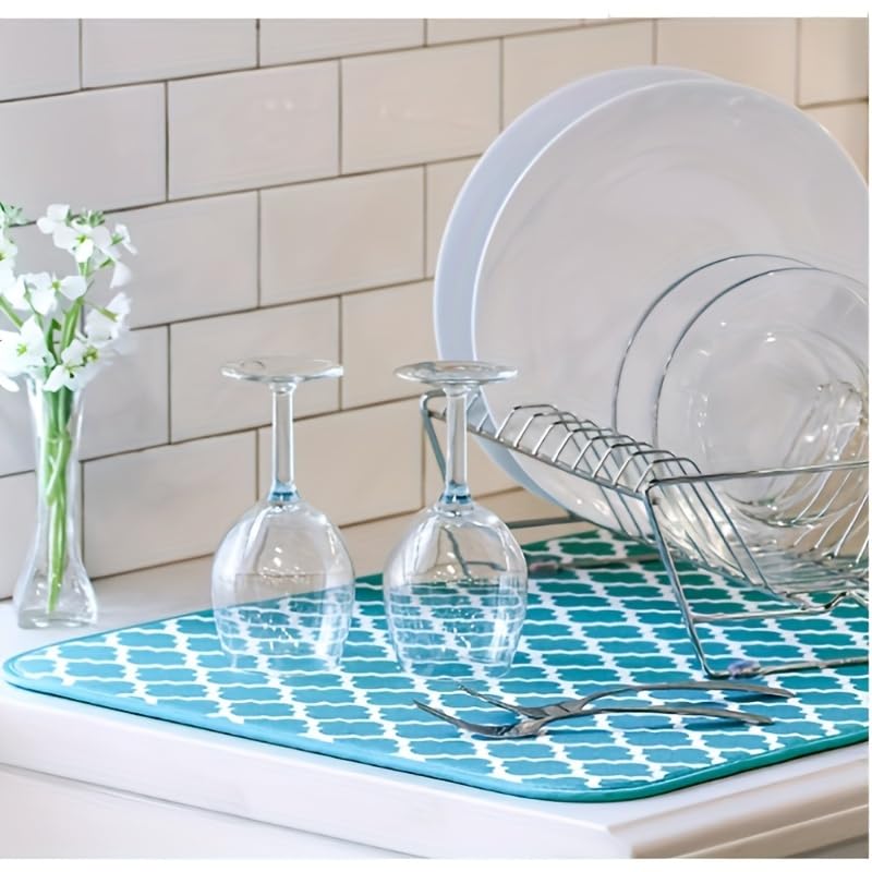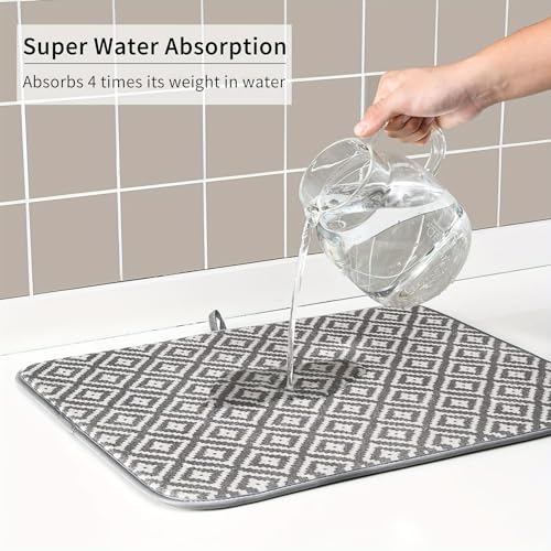 • SUPER ABSORBENT MICROFIBER: This dish and cup drying mat is made of high quality microfiber material, ensuring superior water and moisture absorption from your kitchen utensils.