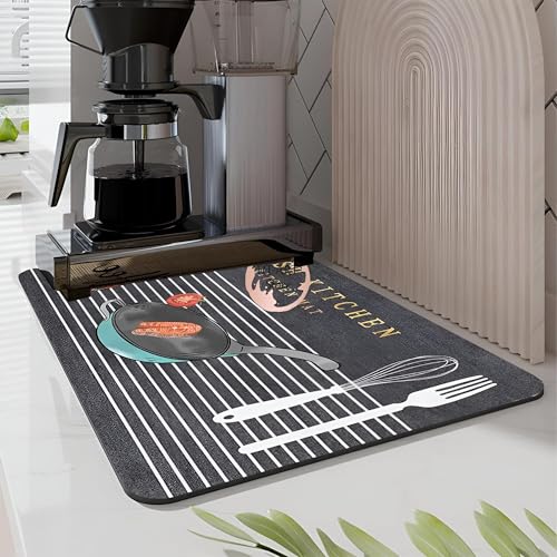 - The dish drying mat is roomy and perfect size to accommodate racks, utensils, cups, pans and more. Keeps your worktop organized and elegant, ensuring your kitchen stays tidy and visually attractive at all times.