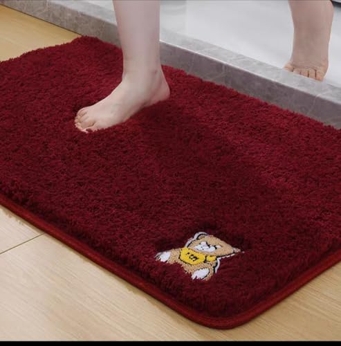 Generic - فلو - دواسة حمام قطيفة بتصميم منقط بلون كحلي وظهر مانع للانزلاق بسطح فرو من المايكروفايبر مقاس 50 × 80 سم مناسبة لغرفة الأطفال (أحمر)