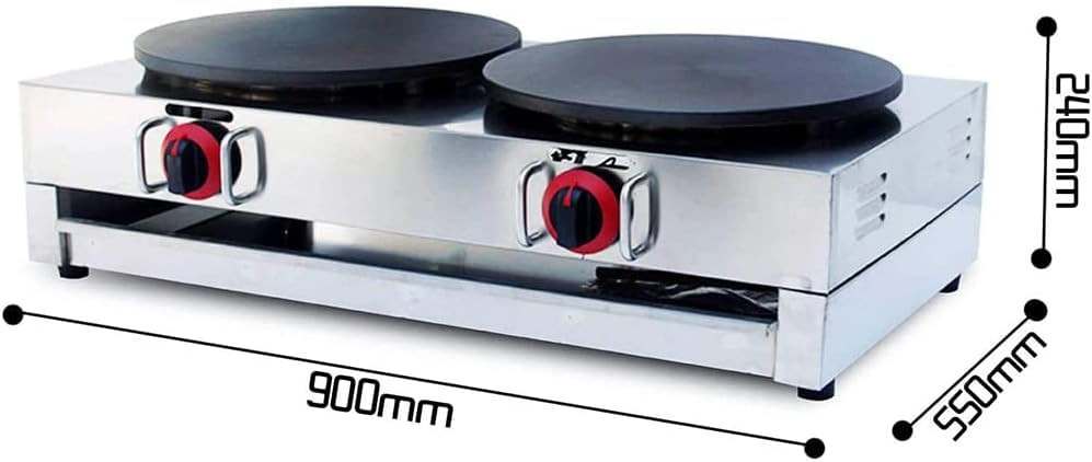 Generic - جيني ماكينة صنع كريب تعمل بالغاز مزدوجة الرأس، مقلاة تجارية غير لاصقة، الة كريب تقليدية، تسخين كبير الحجم، طهي سريع
